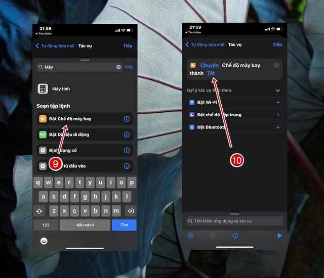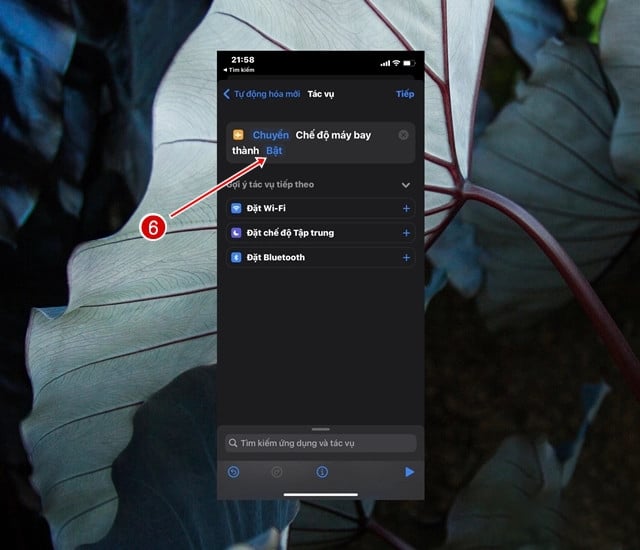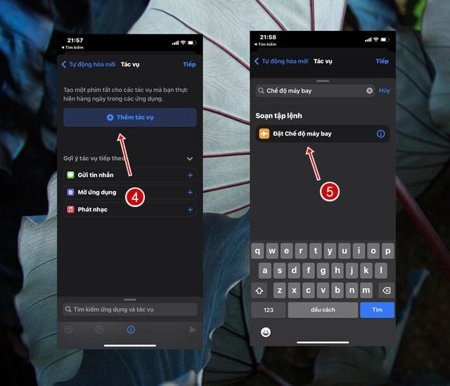 Bước 3: Tại giao diện thiết lập tác vụ, bạn nhấn chọn “Thêm tác vụ” rồi gõ từ khóa “Chế độ máy bay” rồi nhấn chọn kết quả tương ứng phía bên dưới.
