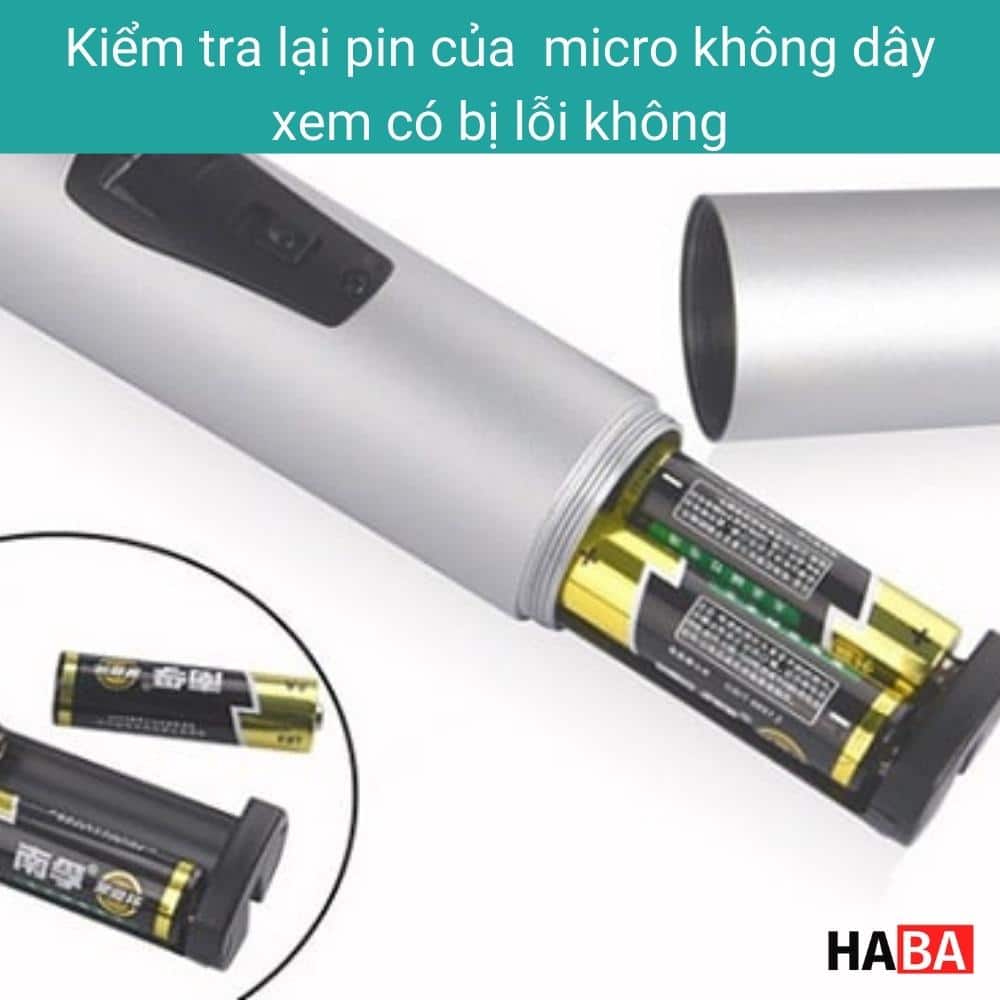 Micro không dây thường hoạt động bằng nguồn điện lấy từ pin được lắp trong thân thiết bị. Do đó, khi pin của micro không được đảm bảo thì chất lượng âm thanh sẽ bị ảnh hưởng. Vì vậy, trước khi sử dụng, bạn hãy kiểm tra tình trạng pin của micro. Đối với pin sạc, bạn nên tháo chúng ra khi không sử dụng micro.