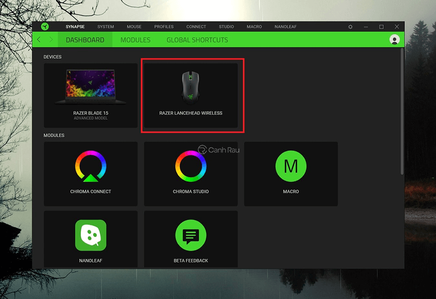 Bước 2: Mở phần mềm Synapse đã cài đặt trên máy tính và bạn sẽ thấy các thiết bị ngoại vi của Razer hiện lên. Hãy nhấn vào ô hiển thị chuột máy tính.