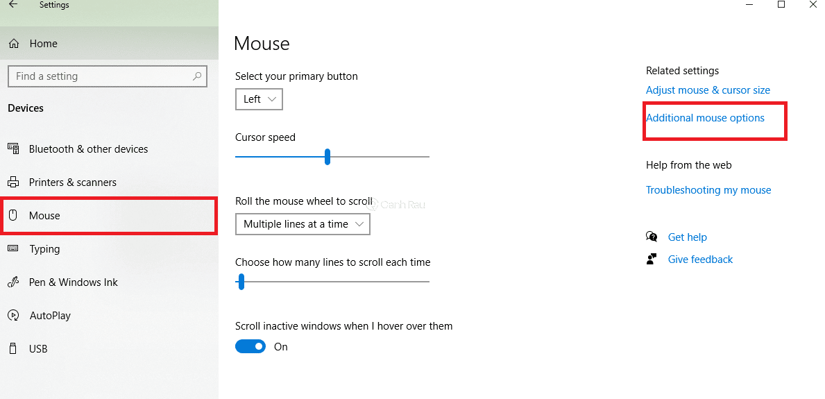 Chọn “Additional mouse options” (Tùy chọn chuột bổ sung). Có thể bạn phải kéo xuống dưới cửa sổ hiện tại để tìm đường dẫn
