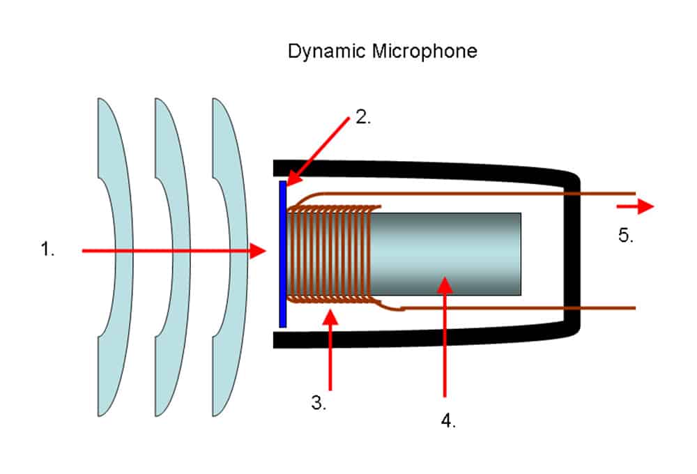 Micro dynamic sẽ nhận sóng âm từ bên ngoài sau đó chuyển đến màng rung và chuyển rung đến cho cả cuộn dây đồng! Chính sự rung động của cuộn dây đồng trong môi trường từ trường của nam châm sẽ tạo ra dòng điện xoay chiều đến 2 đầu dây dẫn sau đó là được khuyếch đại lên bởi mixer và amply.