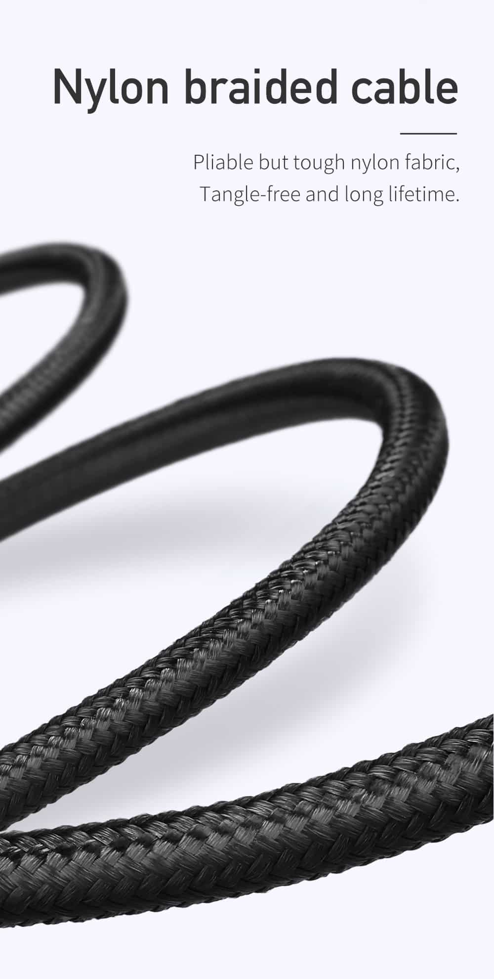 Chất liệu dây dù cho phép khả năng chịu lực cao, và không ảnh hưởng đến chất lượng cáp sạc