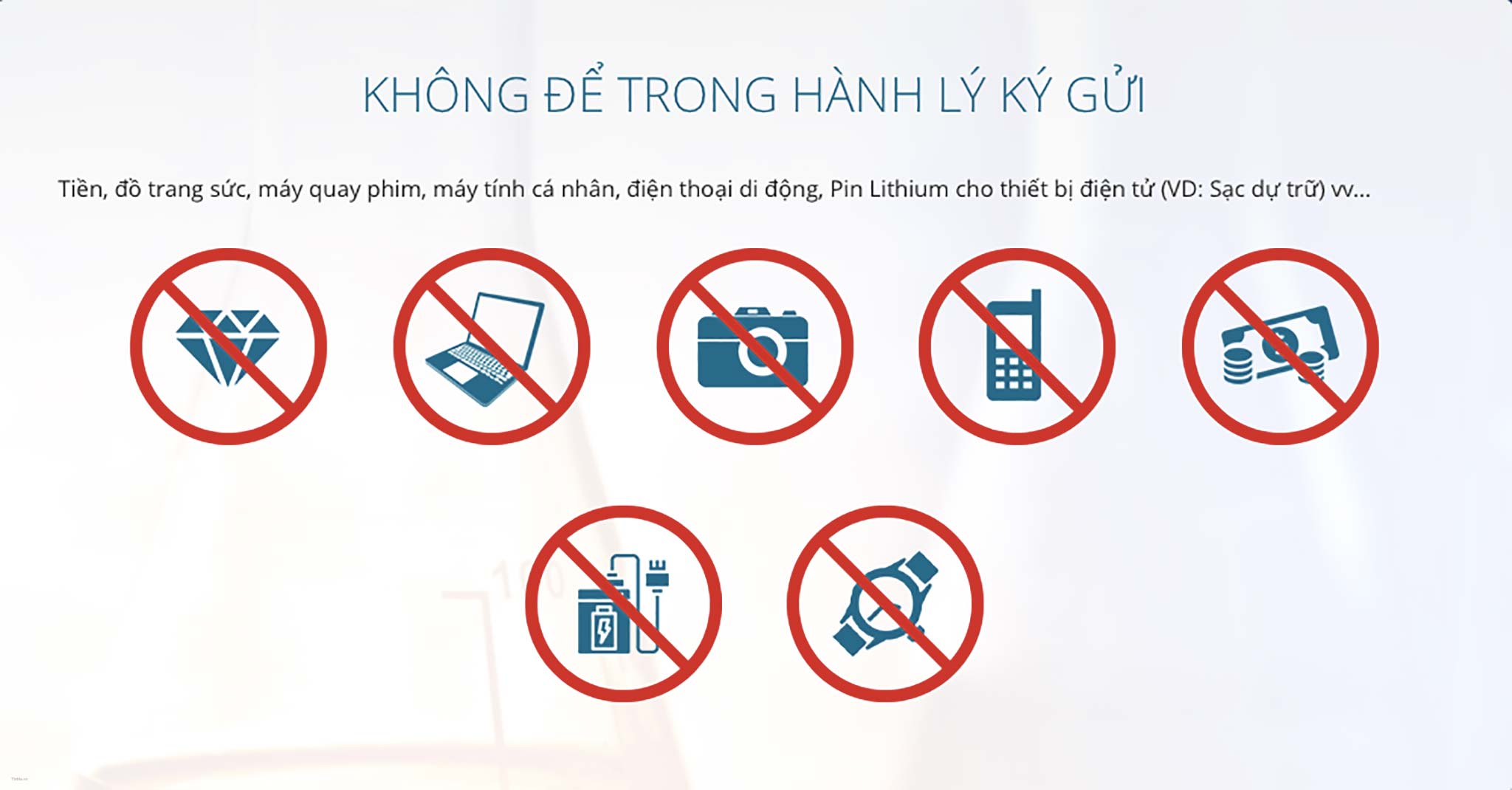 • Pin sạc dự phòng mang theo dạng hành lý xách tay và không được mang theo dưới dạng hành lý ký gửi.