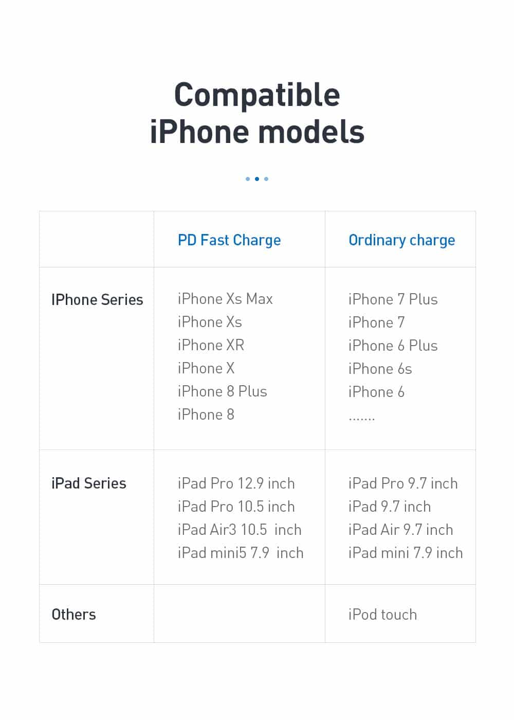 Cáp có độ tương thích cao: Phone Xs Max, iPhone Xs, iPhone XR, iPhone X, iPhone 8 Plus, iPhone 8, iPhone 7 Plus, iPhone 7, iPhone 6 Plus, iPhone 6s, iPhone 6; iPad Pro 12.9, iPad Pro 10.5 inch, iPad Air3 10.5 inch, iPad mini5 7.9 inch, iPad Pro 9, iPad 9.7 inch, iPad Air 9.7 inch, iPad mini 7.9 inch; iPod touch ….
