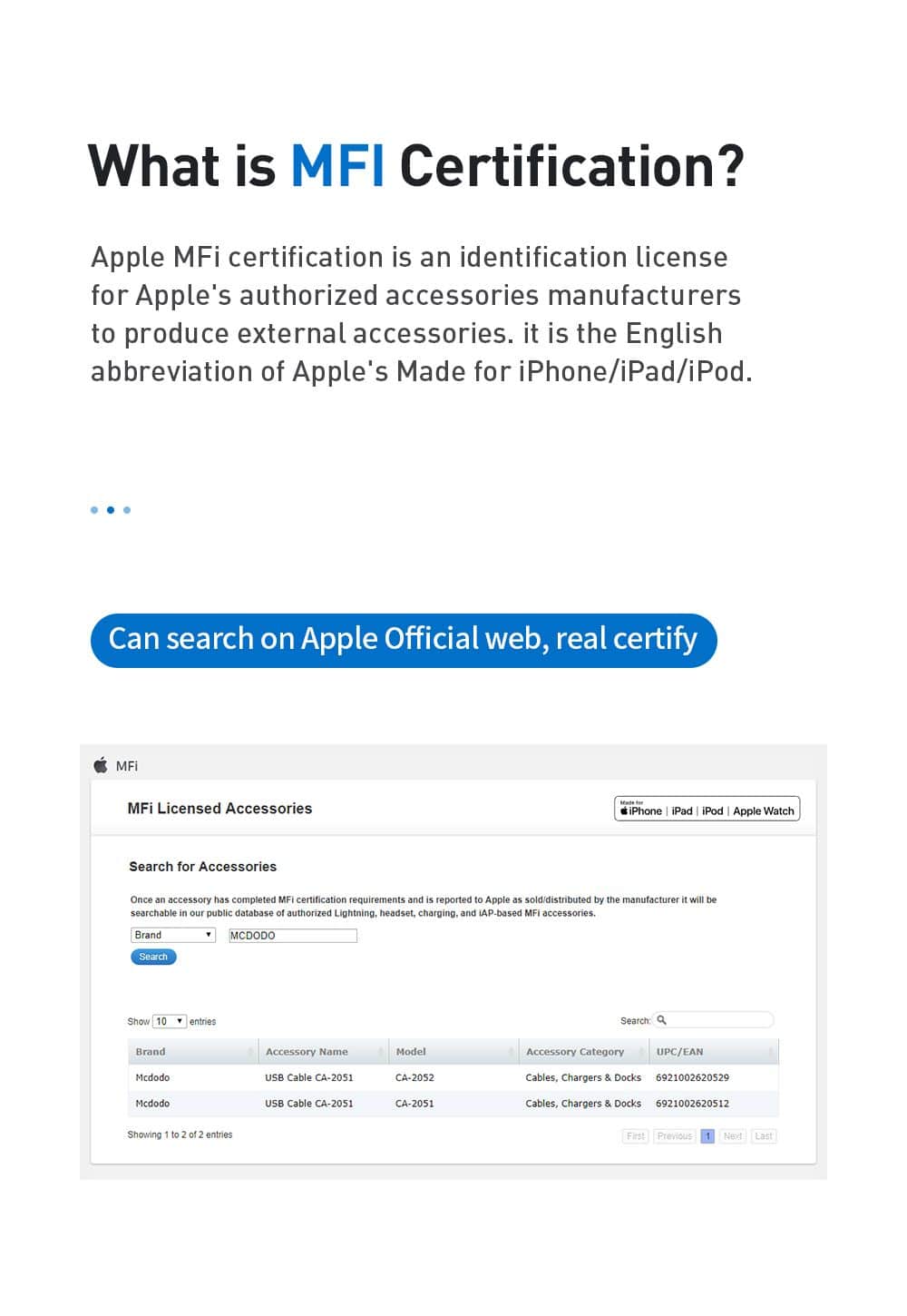 Cáp dữ liệu sạc nhanh PD được chứng nhận chính thức của Apple Type-C sang Lightning dùng cho iPhone iPad iPod (Sản phẩm được cấp chứng nhận MFi của Apple là giấy phép nhận dạng dành cho các nhà sản xuất phụ kiện được Apple ủy quyền sản xuất các phụ kiện bên ngoài, nó là tên viết tắt tiếng Anh của Apple Made for iPhone / iPad / iPod )