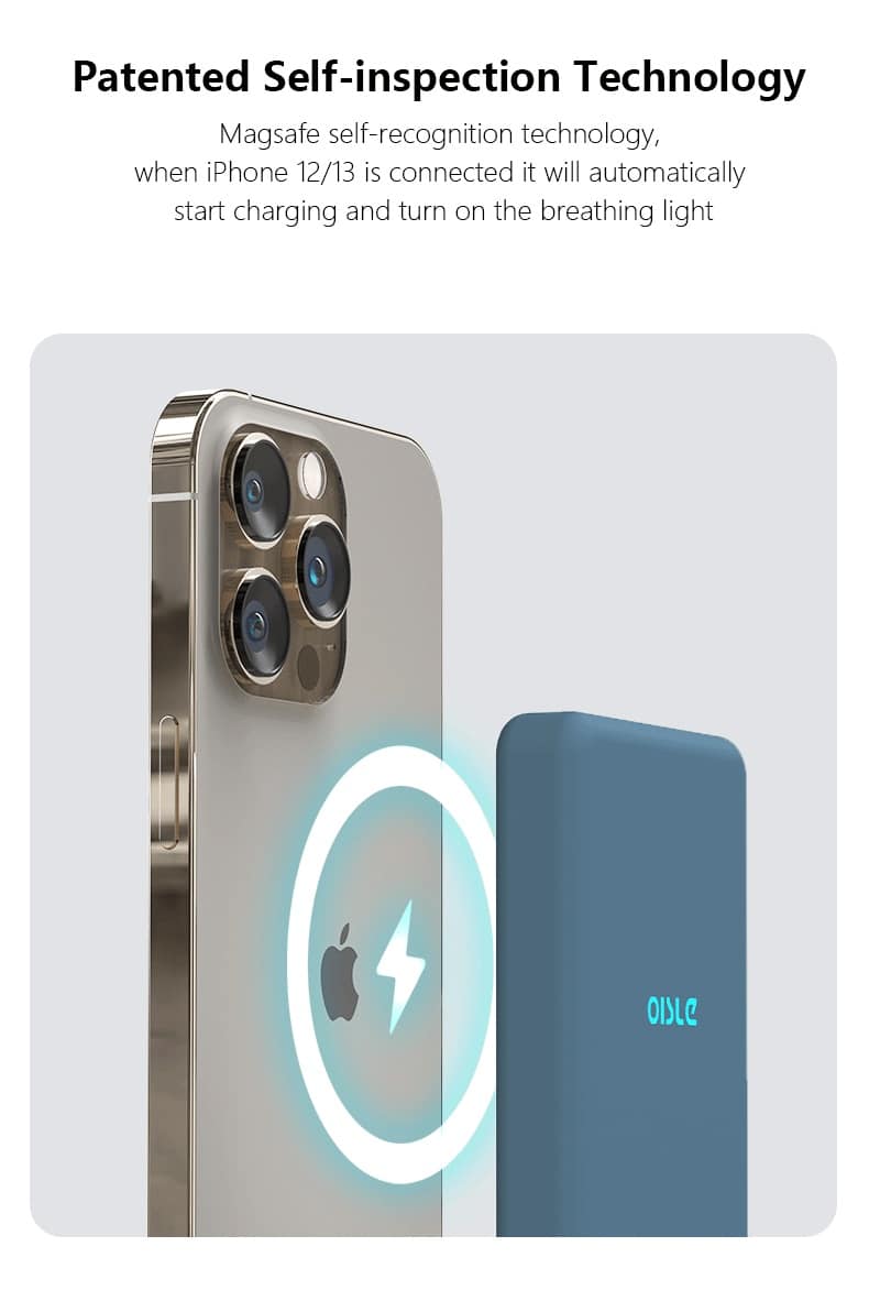 Một bước để sạc. Tích hợp chip tự dò tìm magasafe , Chỉ cần đặt cục sạc dự phòng này vào mặt sau iPhone của bạn , sau đó nó sẽ tự động sạc không dây cho iPhone của bạn mà không cần bất kỳ sợi dây nào.